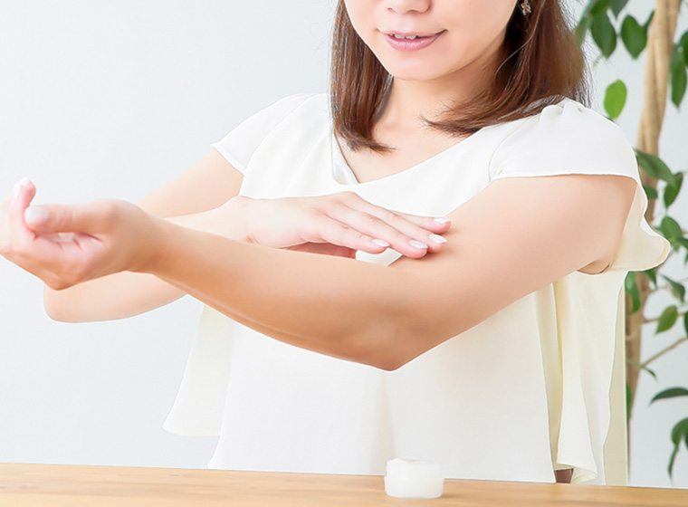 問診内容や検査結果により関与が疑われる悪化因子の除去に努め、保湿剤等を用いてスキンケアを行うことで皮ふへの刺激、アレルゲンの侵入を防ぎます。皮ふの炎症、かゆみに対しては、ステロイド、タクロリムス、JAK阻害薬等の塗り薬を中心に使用し、重症度に応じて光線療法や抗アレルギー薬、シクロスポリン、漢方薬などの内服薬、生物学的製剤も選択することが可能です。お子様の場合は、皮ふからアレルギー症状を発症し、食物アレルギー、気管支喘息、アレルギー性鼻炎と皮ふ以外のアレルギー症状も引き起こされることもあり、そのようなアレルギーの発症を予防するためにも乳幼児期からのスキンケアが極めて重要です。